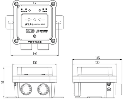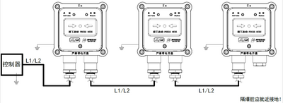 - 按下按钮操作面板,红色启动指示灯常亮,控制器显示出消钮启动地址。控制器接收到消防泵的隔爆腔应就近接地! 反馈信号后,将消火栓按钮的回答灯点亮。