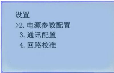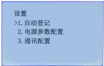 进入设置菜单后,如图7-5.A、7-5.B所示,在设置操作项中可以进行如下操作:自动登记,电源参数配置,通讯配置,回路校准。