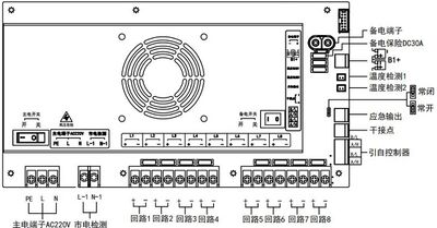 (3) 检查电池线、回路线、通讯信号线连接正常后,再插220V主电,依次打开主电开关、备电开关。