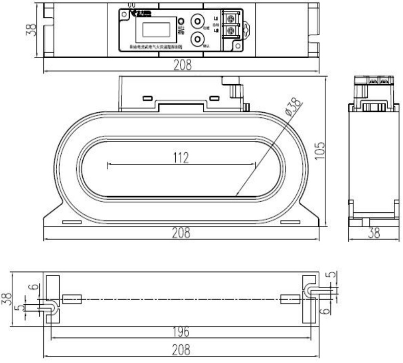 文件:JBF6180系列剩余电流式电气火灾监控探测器 JBF6180-315C 型探测器安装尺寸图.jpg
