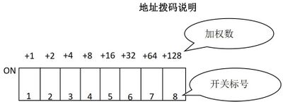拨码开关的地址码形式为 FXXX0000 共 8 位数,其中 XXX:为开关标号的加权数总和。拨码开关的地址码范围(F0010000~F2540000)