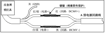 将灯具两个电源线分别接入智能疏散专用两线系统,确保线路连接牢固工整,接线示意如下: