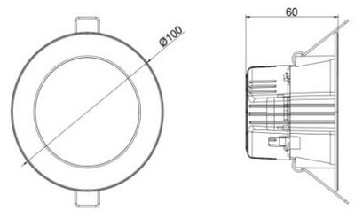 在图纸设计位置,按照图示建议开孔尺寸开孔(Ф80mm),按照上图接线方法接线,将两弹簧卡拔回灯具尾部出线方向,将灯具尾部塞入安装孔,确保灯具牢固美观。