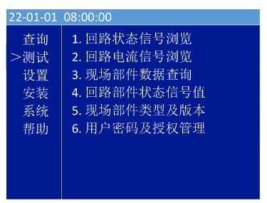 进入安装下的子菜单需输入密码(初始密码111),通过“∧”、“∨”、“确认/消音”键选择要进入的子选项(如图43)。