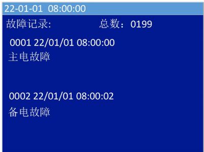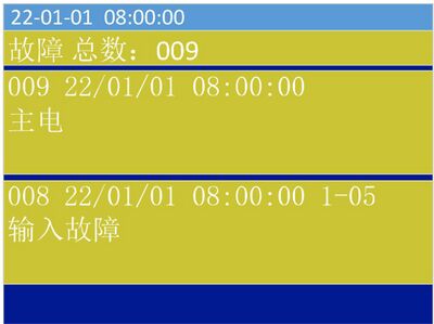 对于已登记的部件,当出现设备故障、无源开关量信号线断路、回路线断路、回路线短路、主电欠压或断电等情况时,控制器将发出故障声、光指示,此时面板上黄色故障指示灯常亮,显示屏上显示故障总数、部位的编号、故障时间、安装位置以及类型(图7),控制器将记录相关的故障信息。