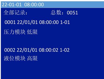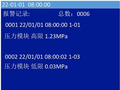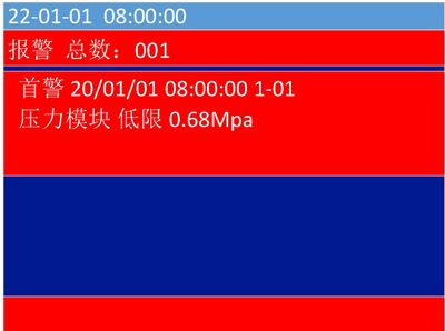 - 1)本界面具有最高优先级,若报警时控制器正处于其他界面,将立即自动转入报警页面,并发出报警声;反之若已处于本菜单,出现其他状态(如故障等)则不能自动转至其他状态(如故障等)界面,可通过按键操作进入“查询系统信息”或者“查询历史记录”界面查看其它状态信息。