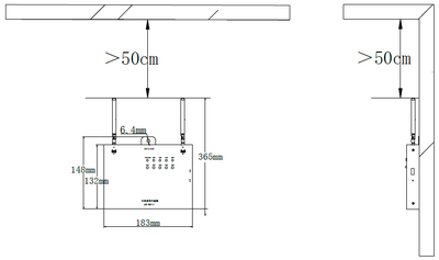 注:无线中继器安装位置需远离强电磁干扰设备,并且需保证天线安装应保持与地面垂直,天线距离天花板距离不小于50cm,应保证天线周围至少有一侧无遮挡。
