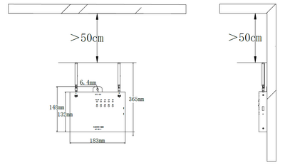 注:无线中继器安装位置需远离强电磁干扰设备,并且需保证天线安装应保持与地面垂直,天线距离天花板距离不小于 50cm,应保证天线周围至少有一侧无遮挡。