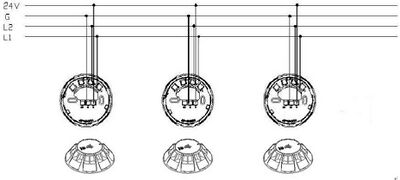 1.3 底座L1、L2连接在控制器总线L1、L2上(无极性):底座上V1和G1分别连接在直流电源DC24V和GND上(注意极性)。