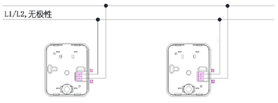 - 将总线接在 L1、L2 端子上,接线无级性。如图 2 所示: